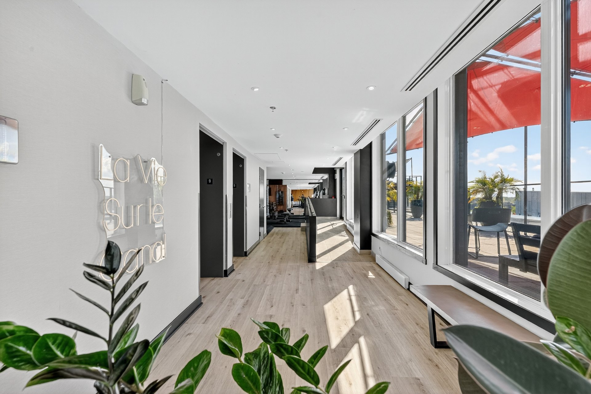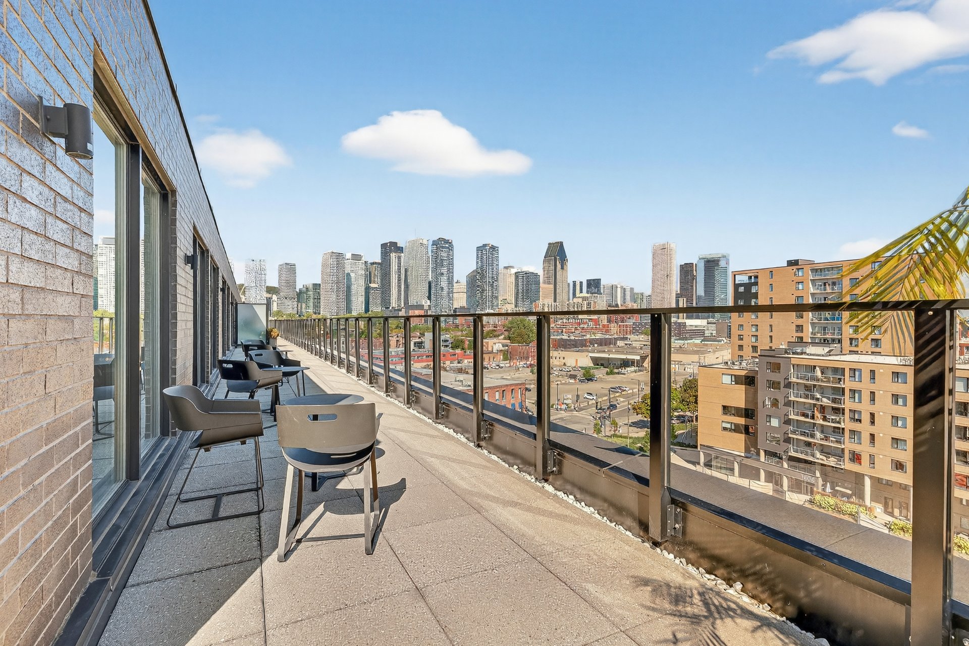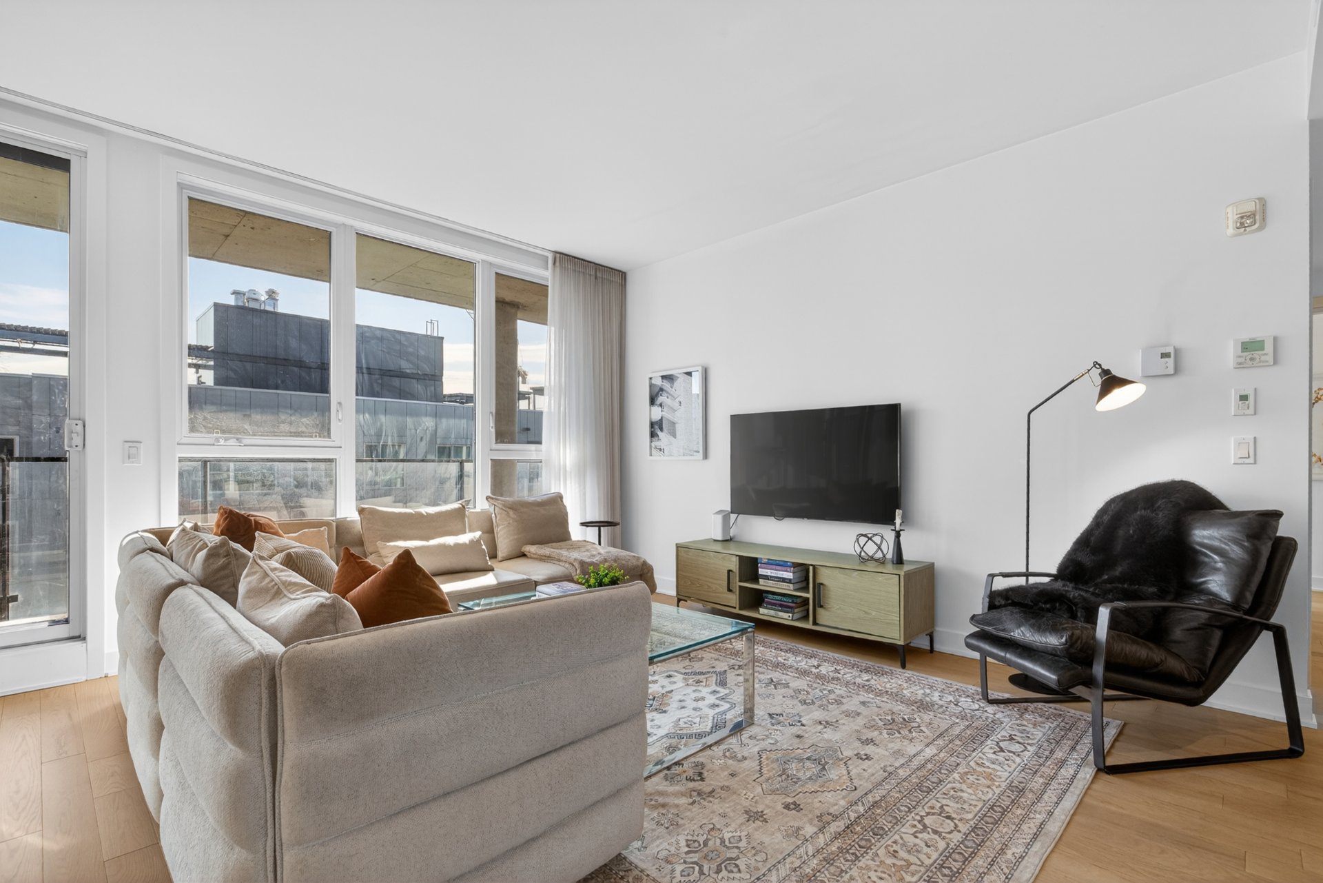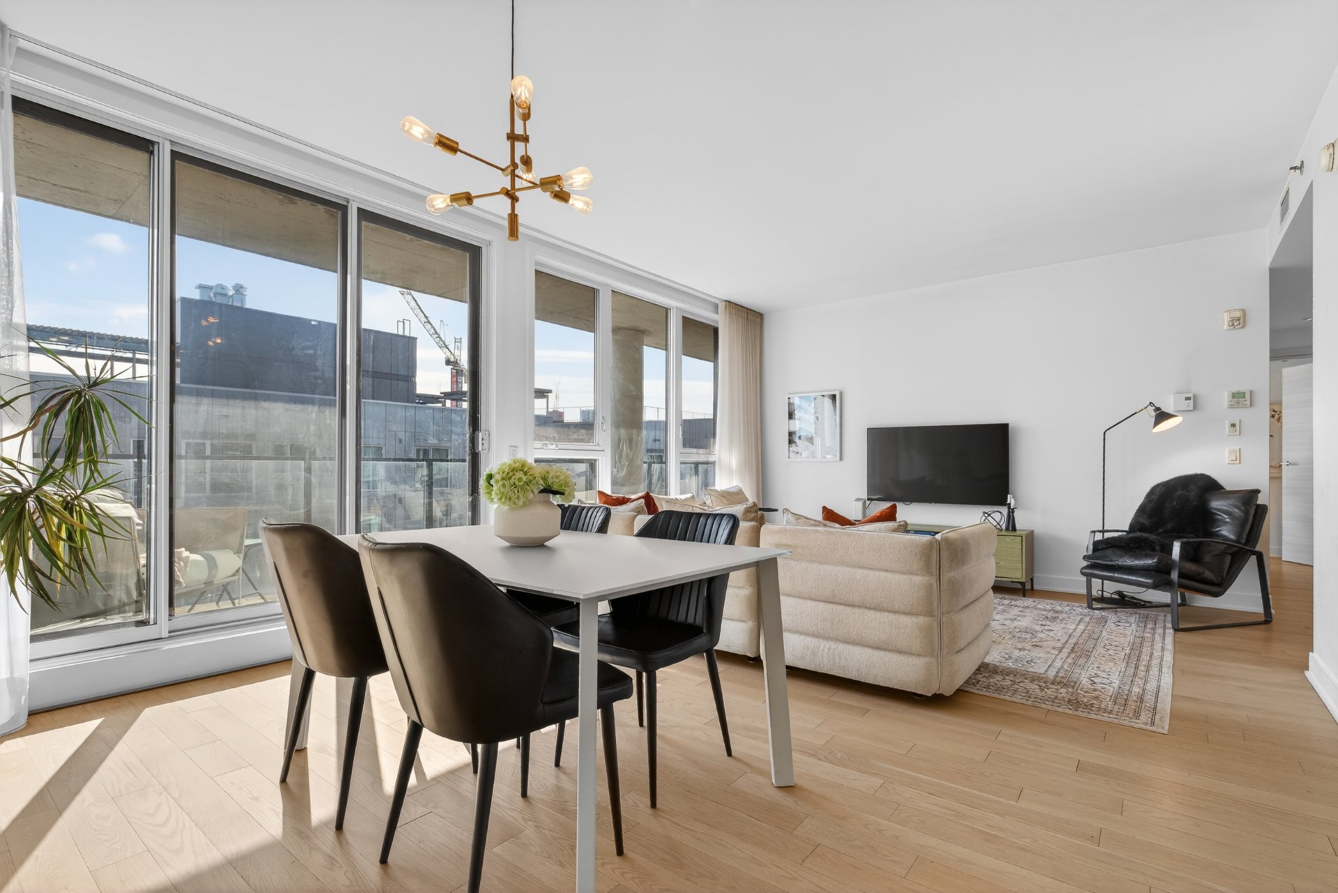 Rare sur le marché: dernier étage avec terrasse privée de 40 pieds au Bass Phase 1. Condo 2 chambres, 2 salles de bain d'env. 900 pi², offrant de beaux volumes, plafonds élevés, portes pleine hauteur et finitions soignées. Fenestration abondante baignant l'aire de vie de lumière. Cuisine moderne avec îlot en quartz. Climatisation et eau chaude centrales. Garage et rangement inclus. Immeuble réputé, bien géré et stable, avec piscine sur le toit, gym et lounge. Walk Score 95 à 12 min du métro, à deux pas du canal et des tables prisées comme Grinder, Le Richmond et RYU Sushi. Courte distance à pied au marché Atwater, Vieux-Port et plus !