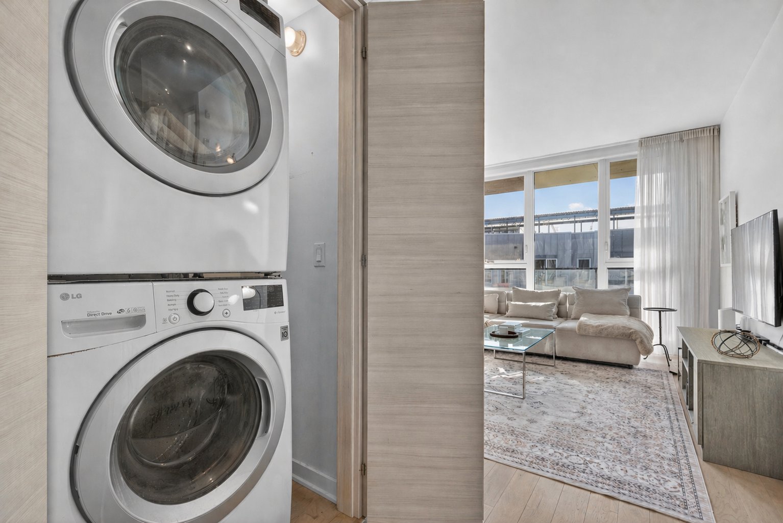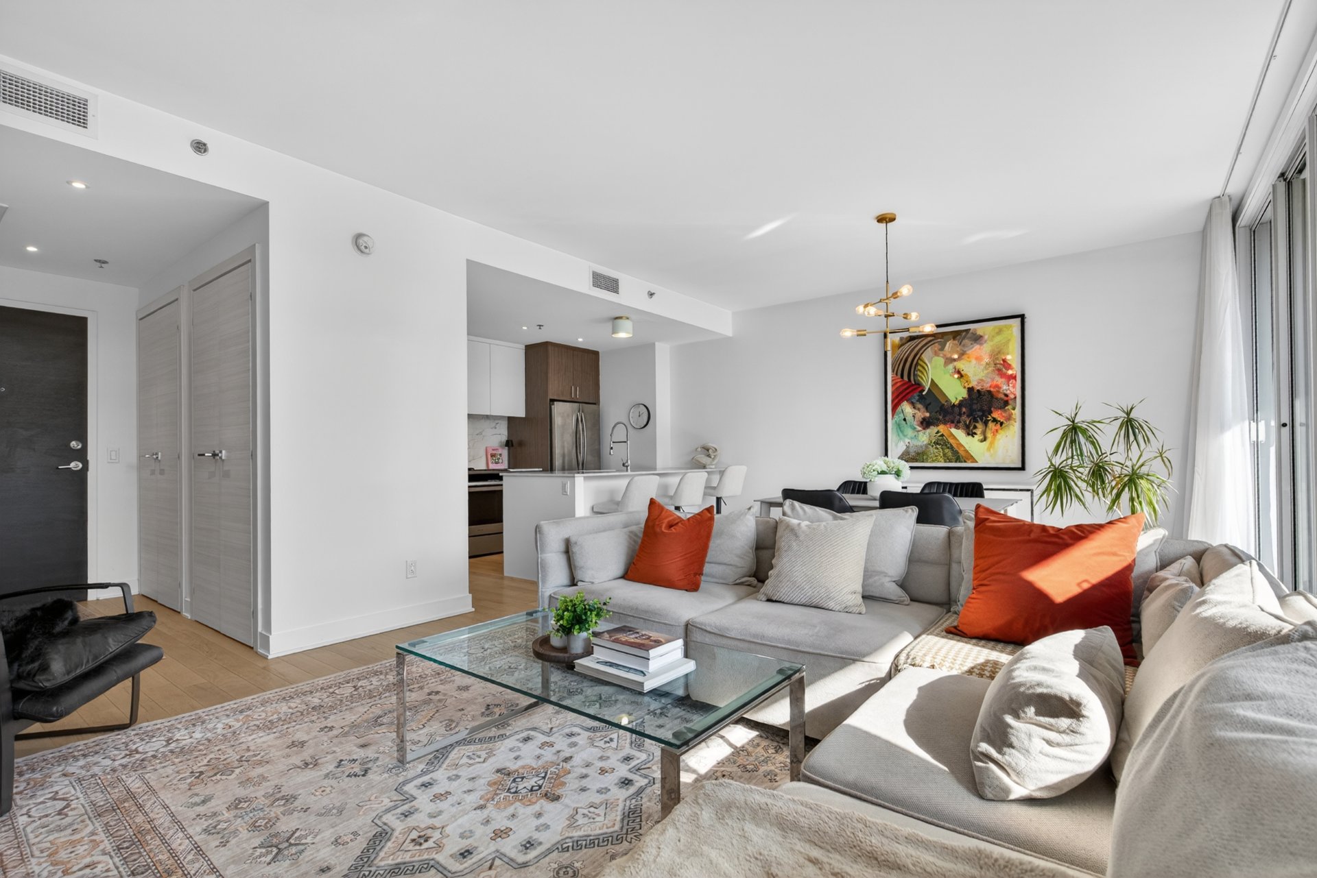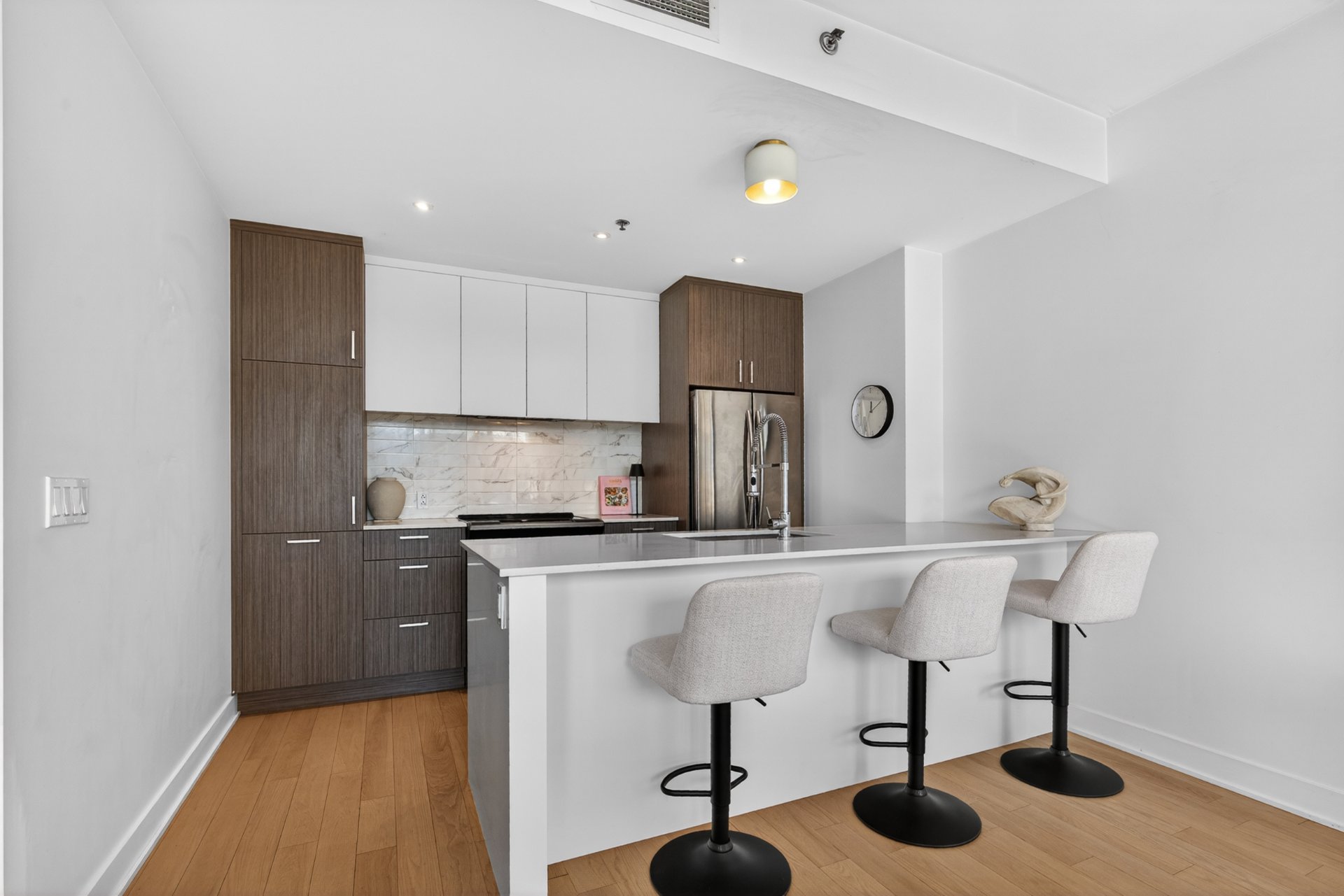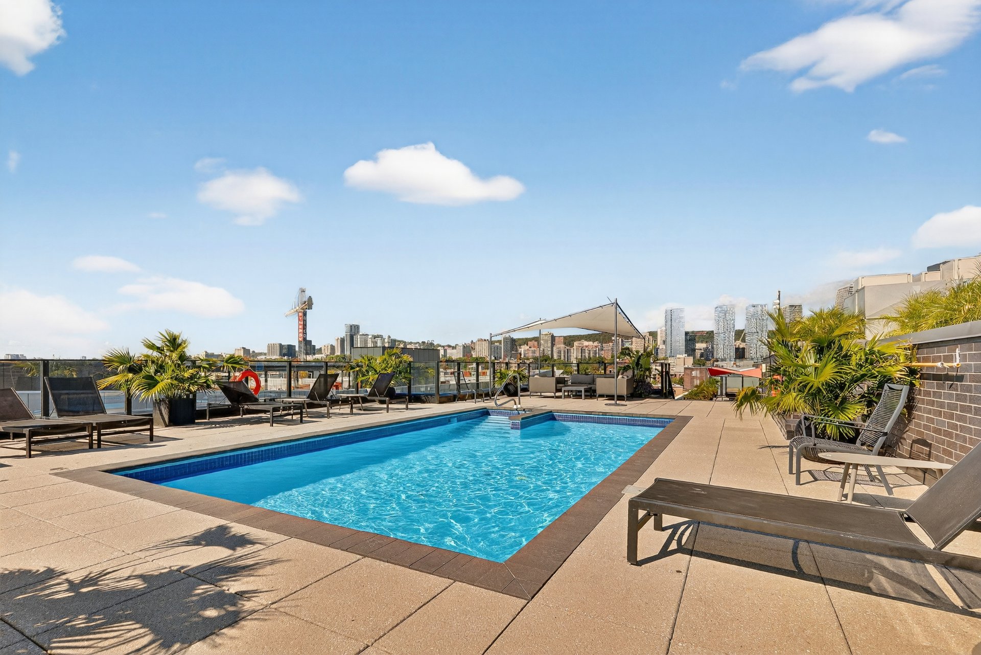 Rare sur le marché: dernier étage avec terrasse privée de 40 pieds au Bass Phase 1. Condo 2 chambres, 2 salles de bain d'env. 900 pi², offrant de beaux volumes, plafonds élevés, portes pleine hauteur et finitions soignées. Fenestration abondante baignant l'aire de vie de lumière. Cuisine moderne avec îlot en quartz. Climatisation et eau chaude centrales. Garage et rangement inclus. Immeuble réputé, bien géré et stable, avec piscine sur le toit, gym et lounge. Walk Score 95 à 12 min du métro, à deux pas du canal et des tables prisées comme Grinder, Le Richmond et RYU Sushi. Courte distance à pied au marché Atwater, Vieux-Port et plus !