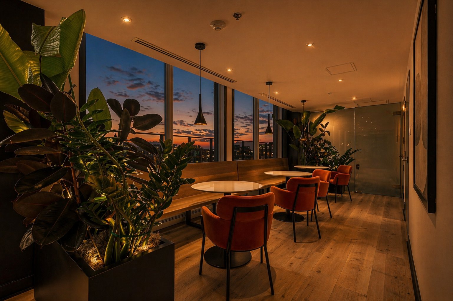 toit avec vues dégagées, ainsi qu'un lounge pour résidents.