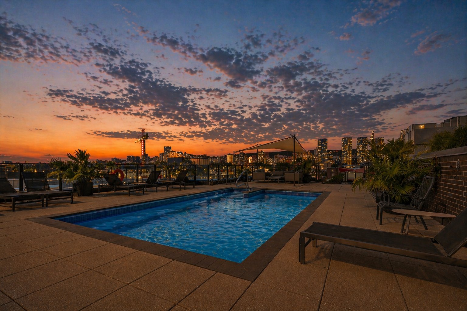 | Services disponibles | Aires communes, Balcon/Terrasse, Chute à déchets, Détecteur d'incendie, Piscine extérieure, Salle d'exercice, Terrasse sur le toit |