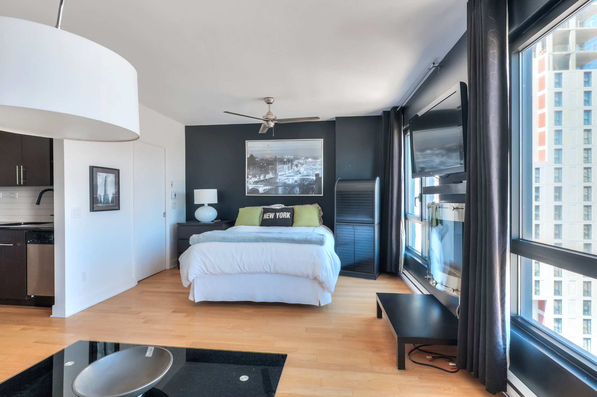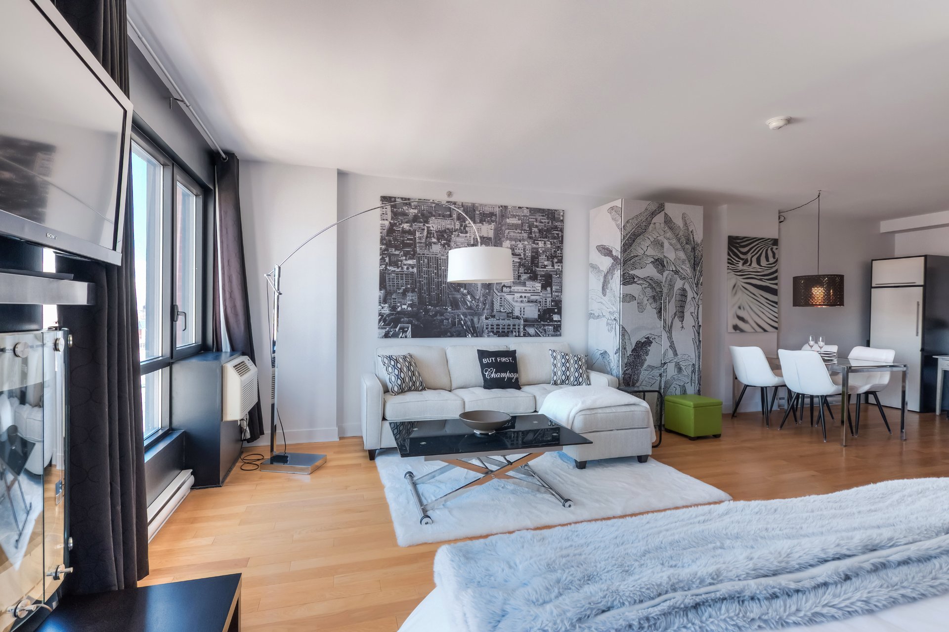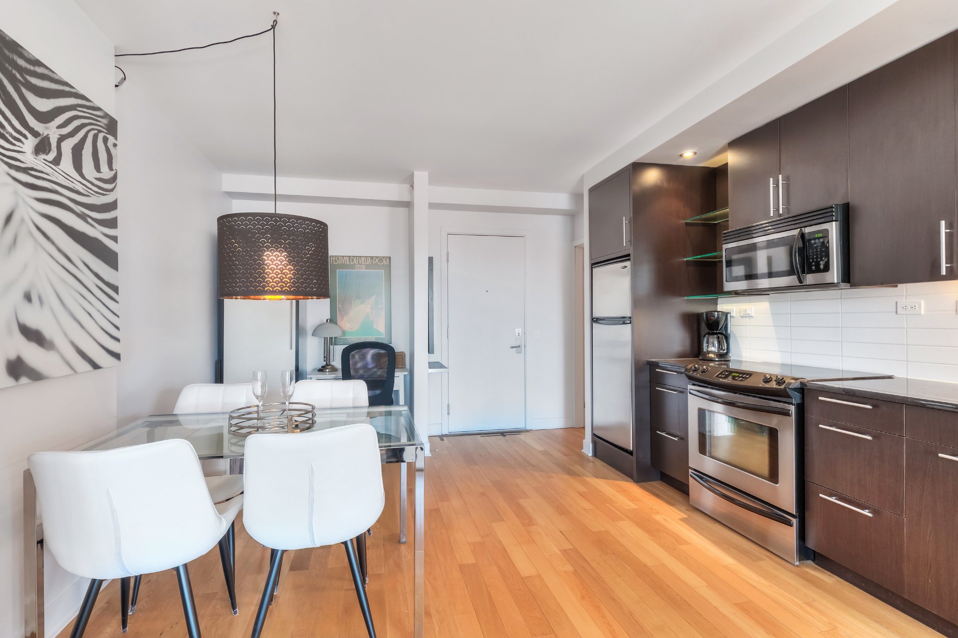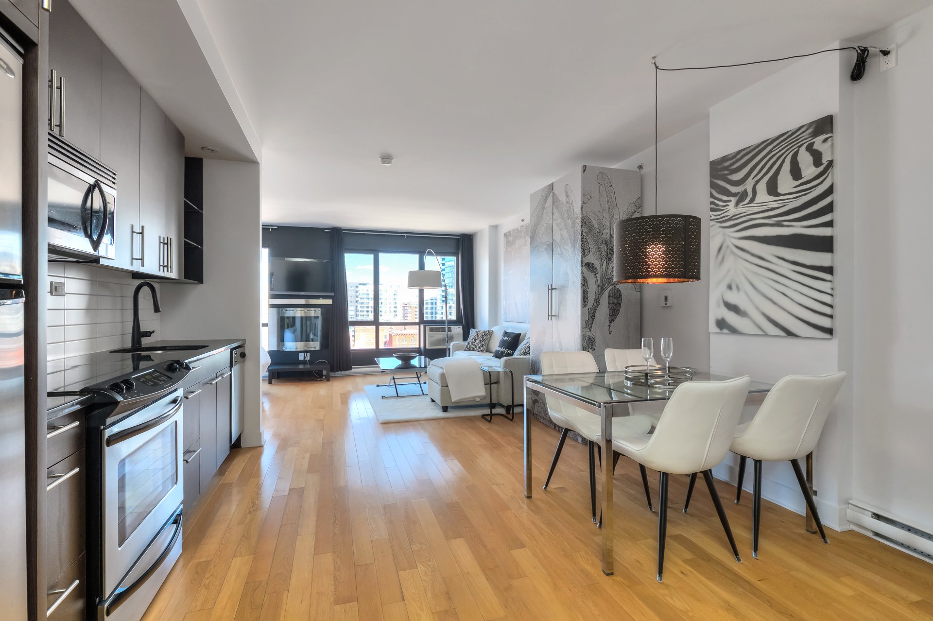 Impeccable and spacious fully furnished condo in Lowney Phase IV in Griffintown! This open-concept condo offers approximately 575 sqft. of living space with a superb view onto Old Montreal. Plenty of storage in the unit and storage space included. Enjoy a rooftop terrace with BBQ and city views. State-of-the-art gym on the ground floor. An urban oasis awaits you!