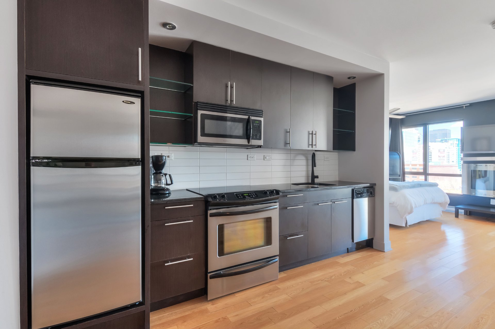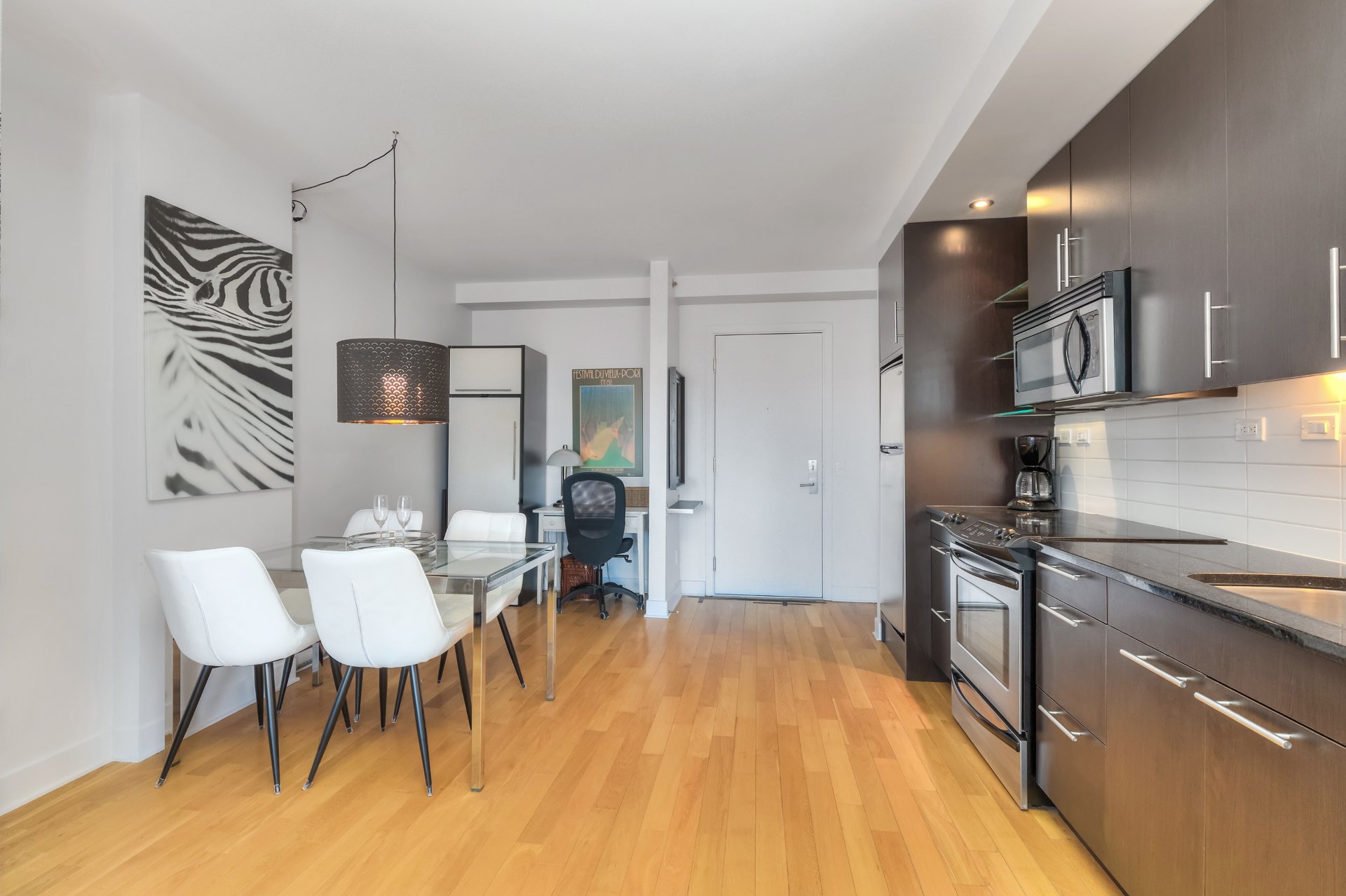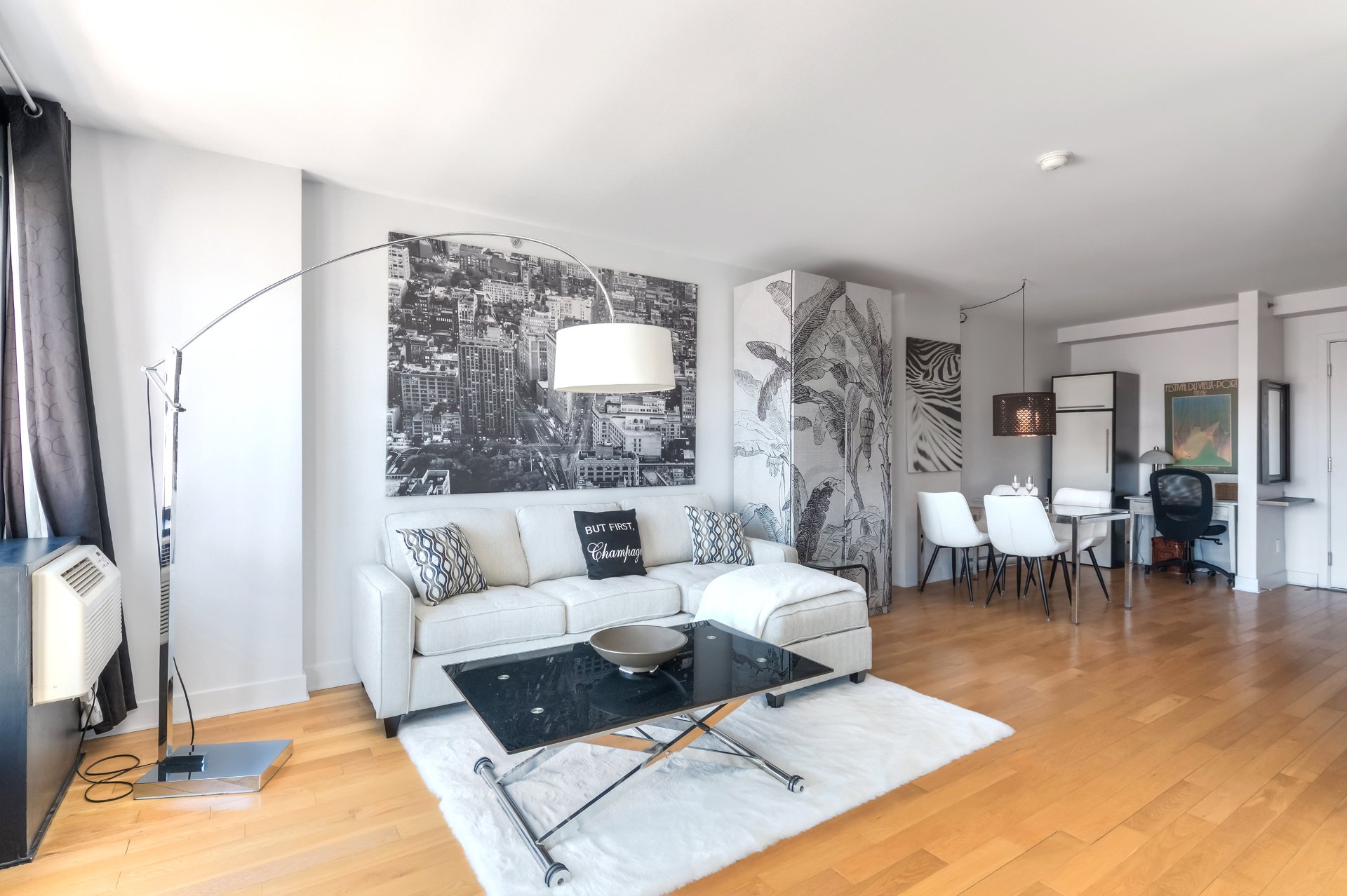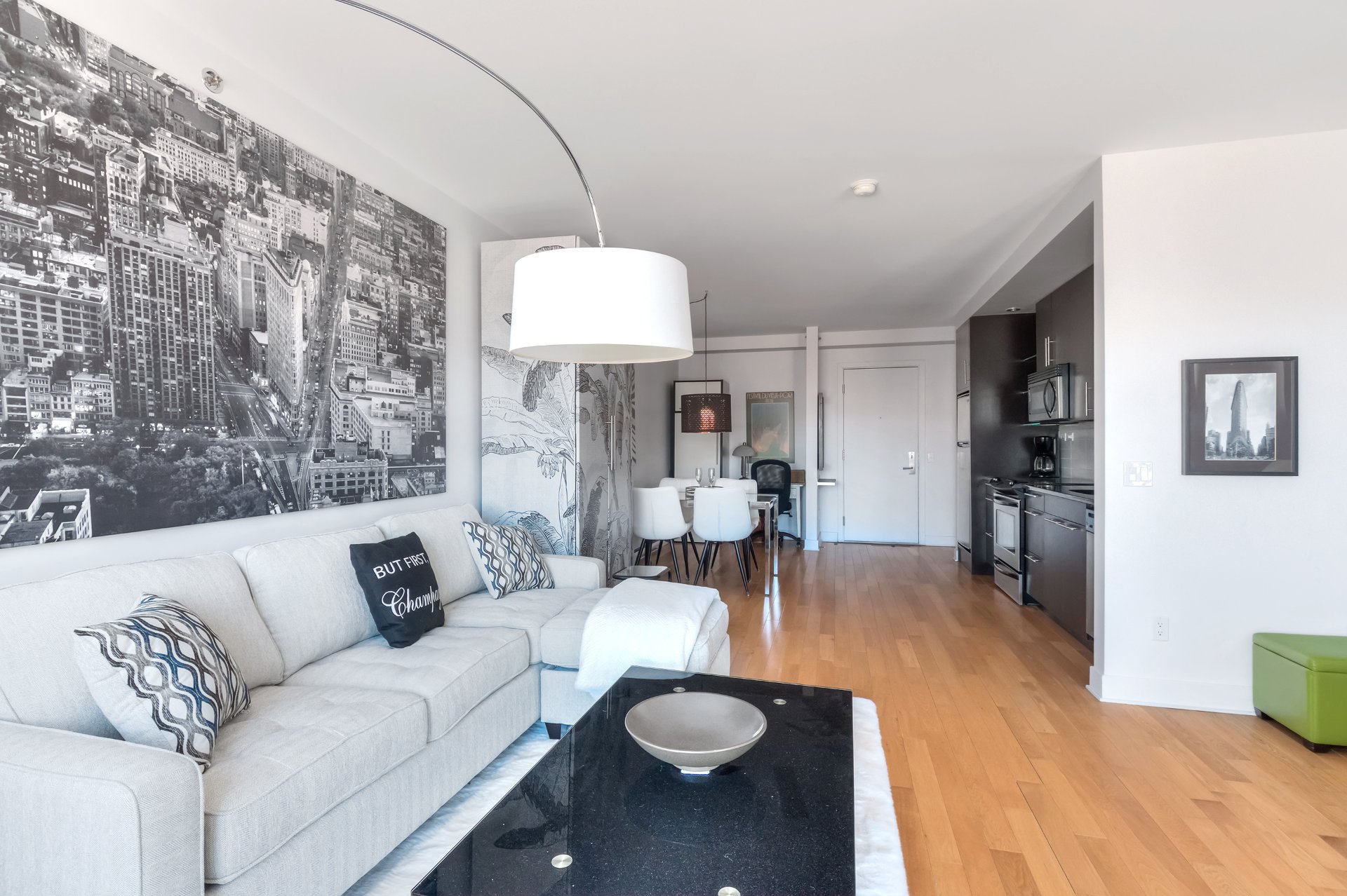 Impeccable and spacious fully furnished condo in Lowney Phase IV in Griffintown! This open-concept condo offers approximately 575 sqft. of living space with a superb view onto Old Montreal. Plenty of storage in the unit and storage space included. Enjoy a rooftop terrace with BBQ and city views. State-of-the-art gym on the ground floor. An urban oasis awaits you!