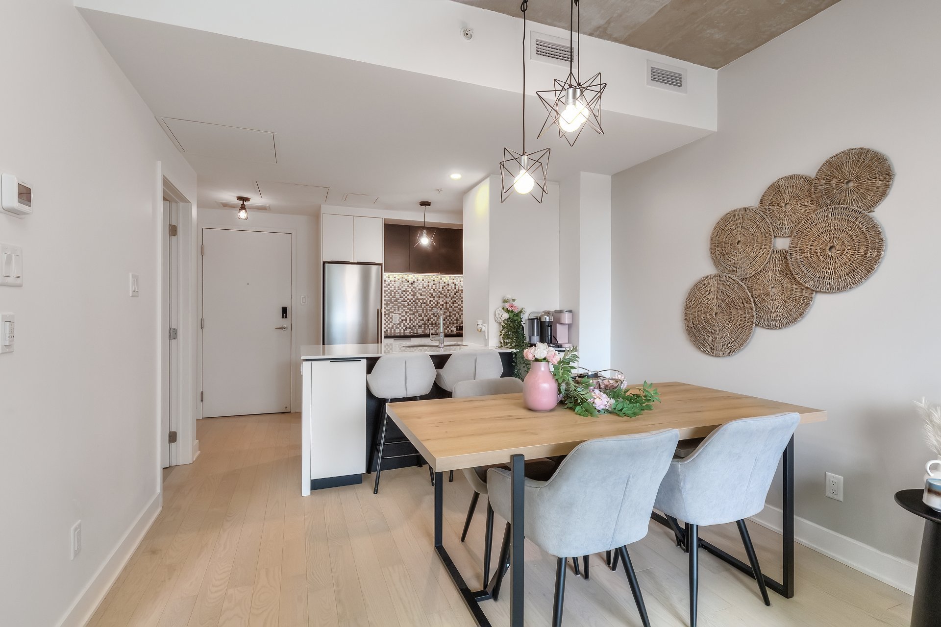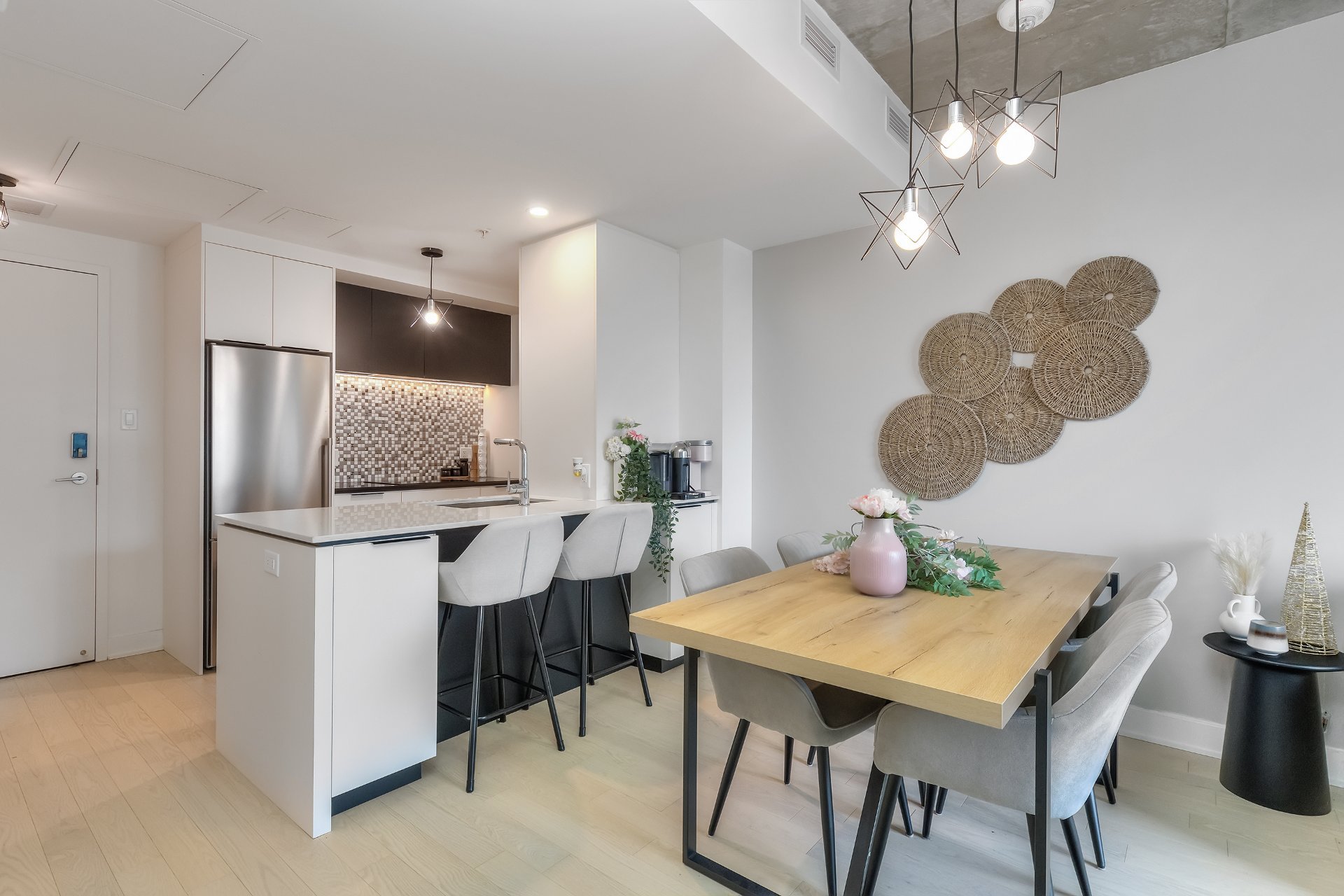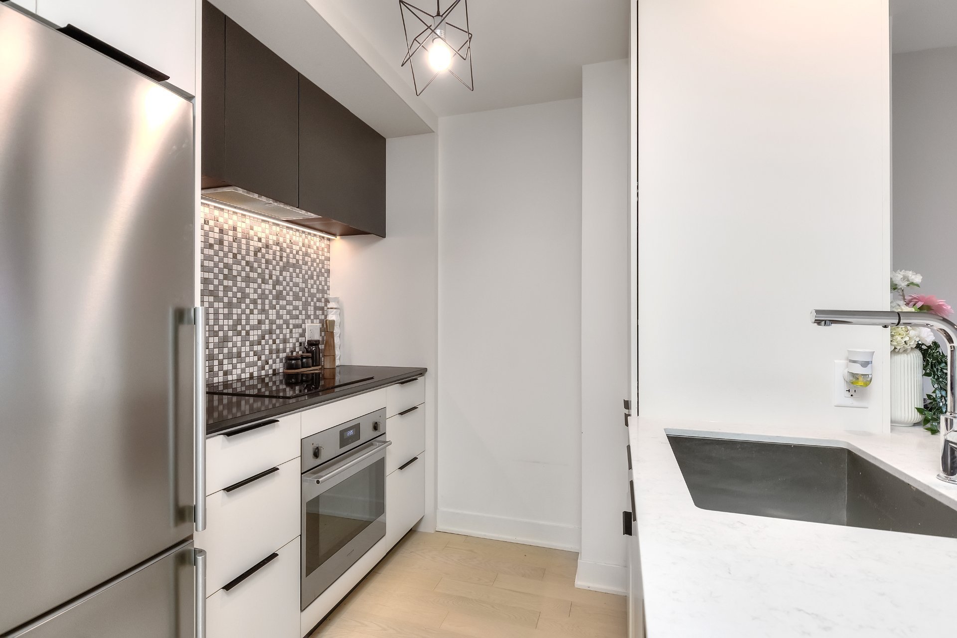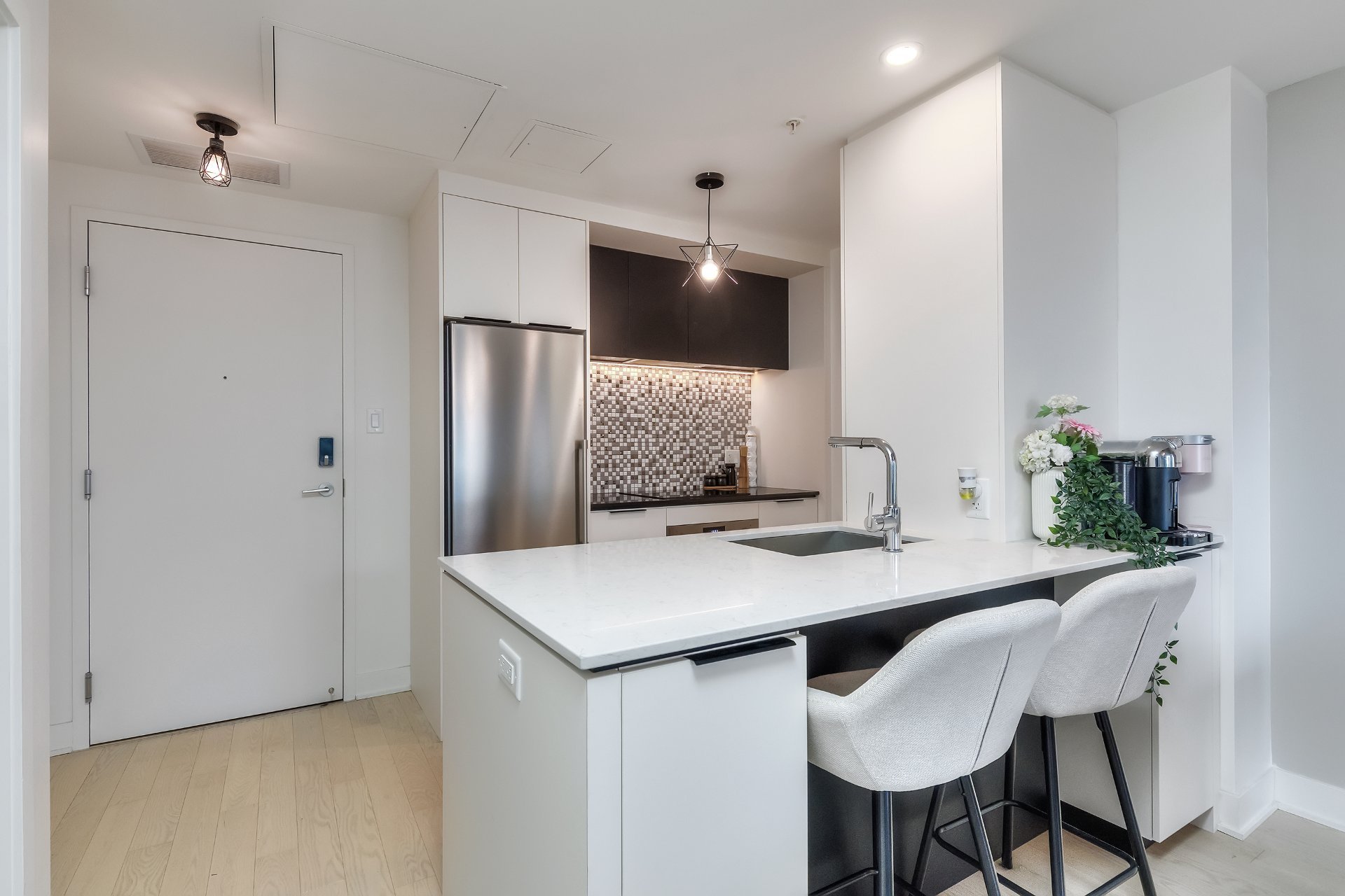 Welcome to the prestigious Nobel building in Brossard's sought-after Solar Uniquartier! This modern 1-bedroom condo offers stylish urban living with direct access to the REM, making commuting to downtown Montreal effortless. Bright and filled with natural light, it features a sleek kitchen with quartz countertops, high-end appliances, and in-unit washer/dryer. Enjoy premium amenities: rooftop terrace, gym, pool, lounge and co-working space. Indoor parking can be added with an extra. Steps from Dix30, restaurants, and shops--luxury and convenience in one!